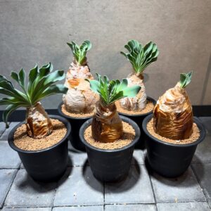 Each Boophone disticha from Caudex Petals is carefully grown with attention to its natural rhythm, allowing its bulb to mature and form its characteristic caudex base. When fully developed, its elegant, symmetrical leaves spread like an open fan, creating a stunning architectural display that adds sophistication to any room or garden.